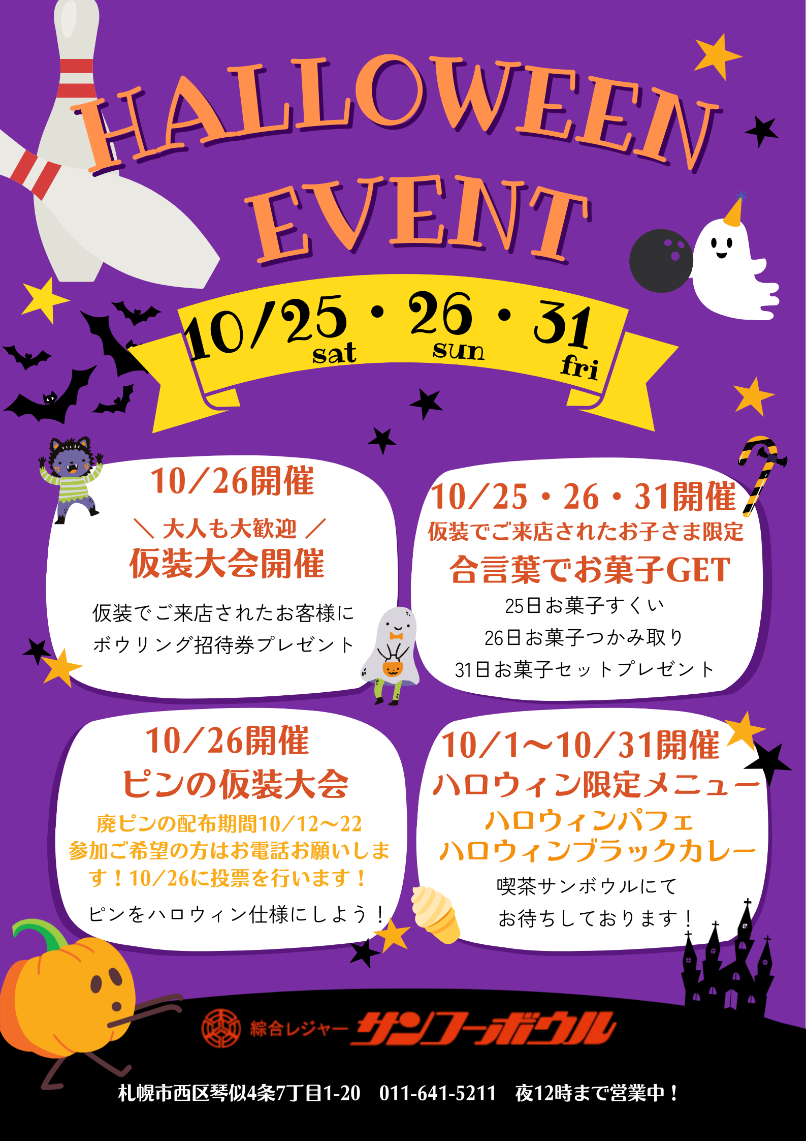 仮装大会に期間限定メニュー、ボウリングのピン仮装大会、お子様向けのイベントなどなど