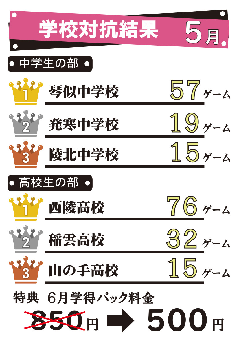 5月の学校対抗イベント結果発表☆