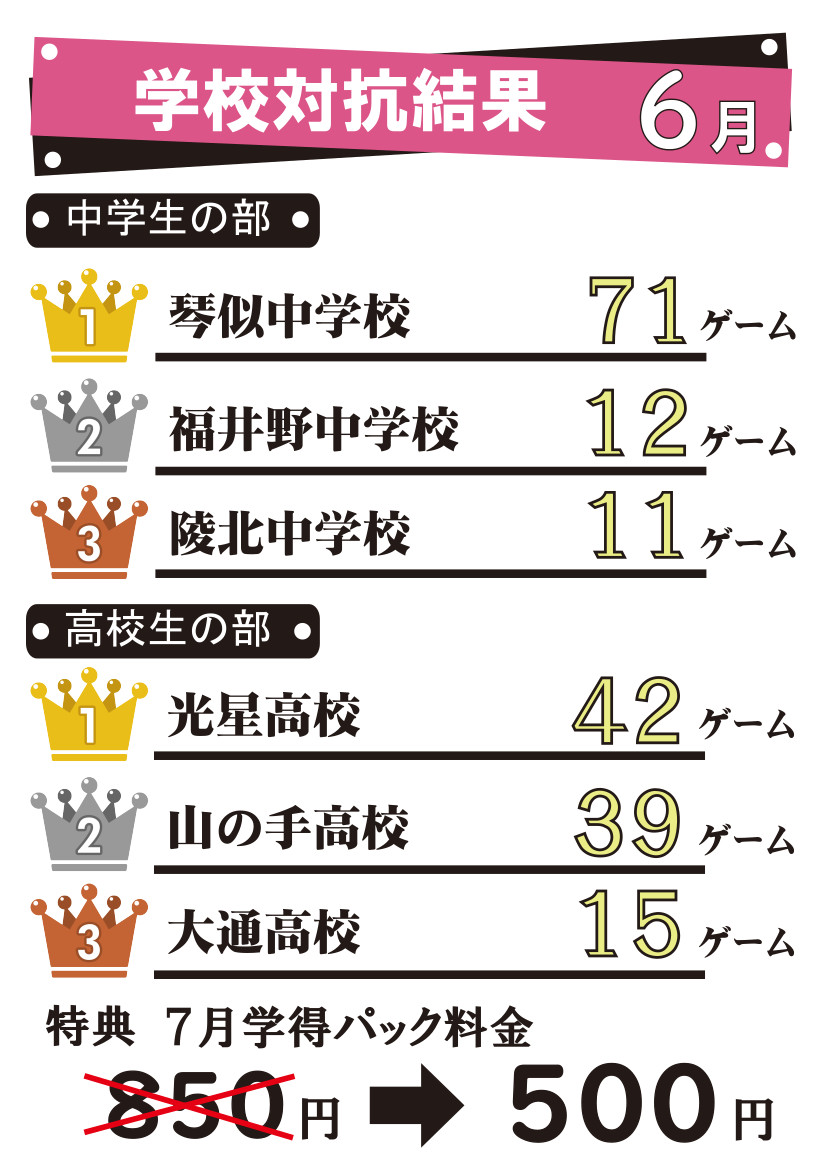 6月の学校対抗イベントは、中学校の部ではかなり差が開きました!