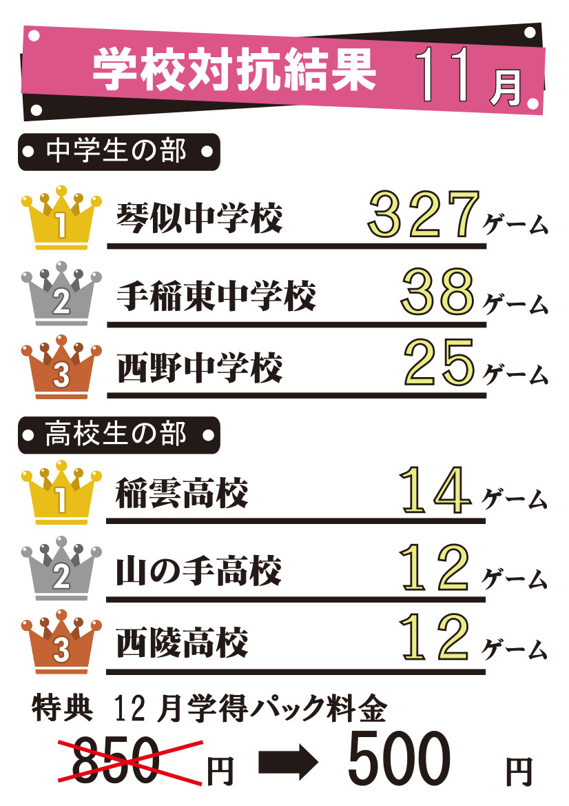 先月の学校対抗イベントの結果を発表させて頂きたいと思います!