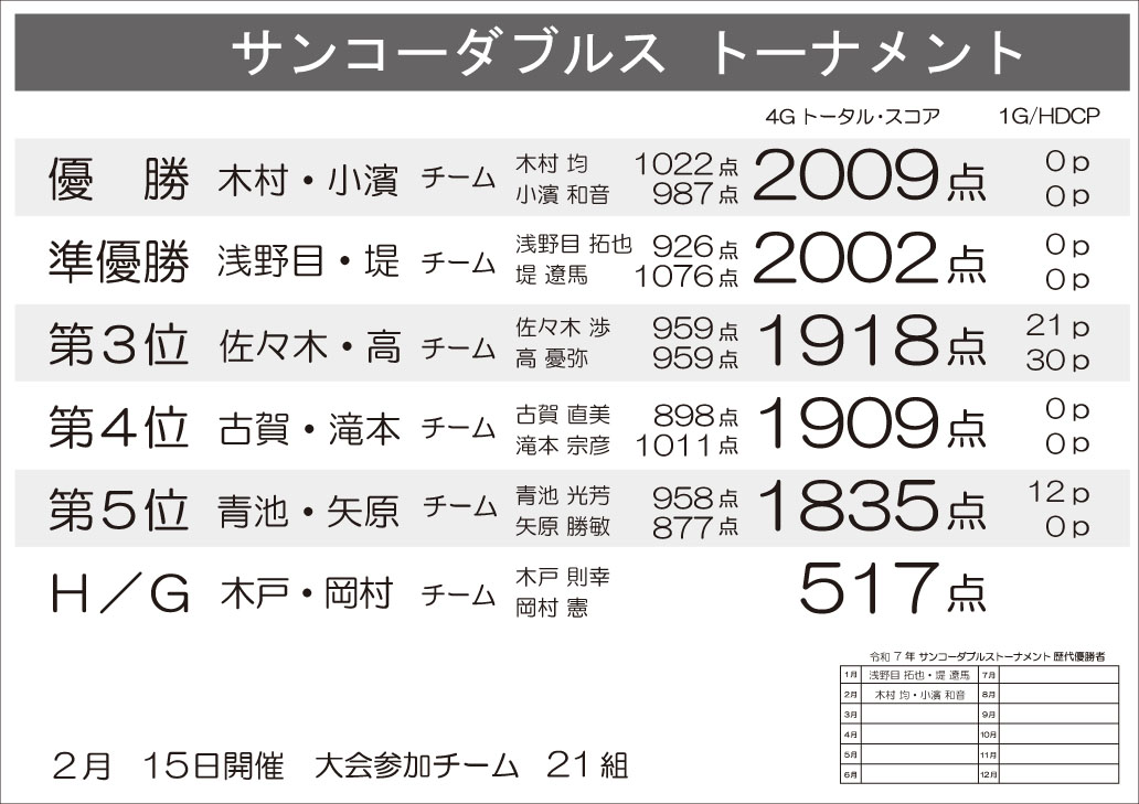 2025年 2月15日(土) 開催  / 参加組数 21組 /  4ゲーム