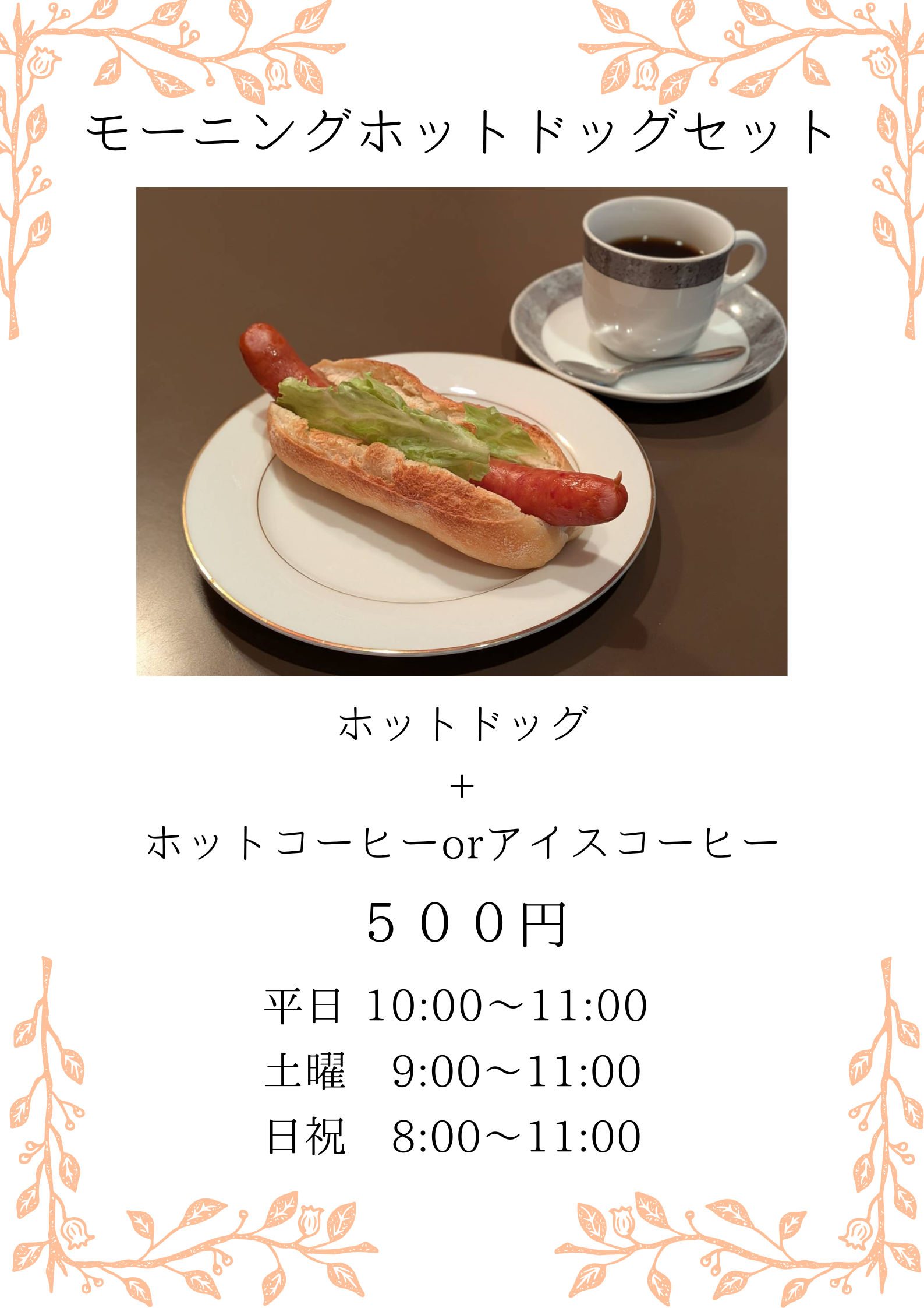 オープン~11時迄の「モーニングホットドッグセット」
