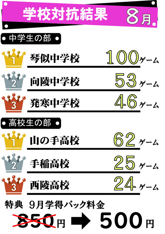 2位の学校に約2倍のゲーム数差をつけての100ゲームでございました☆