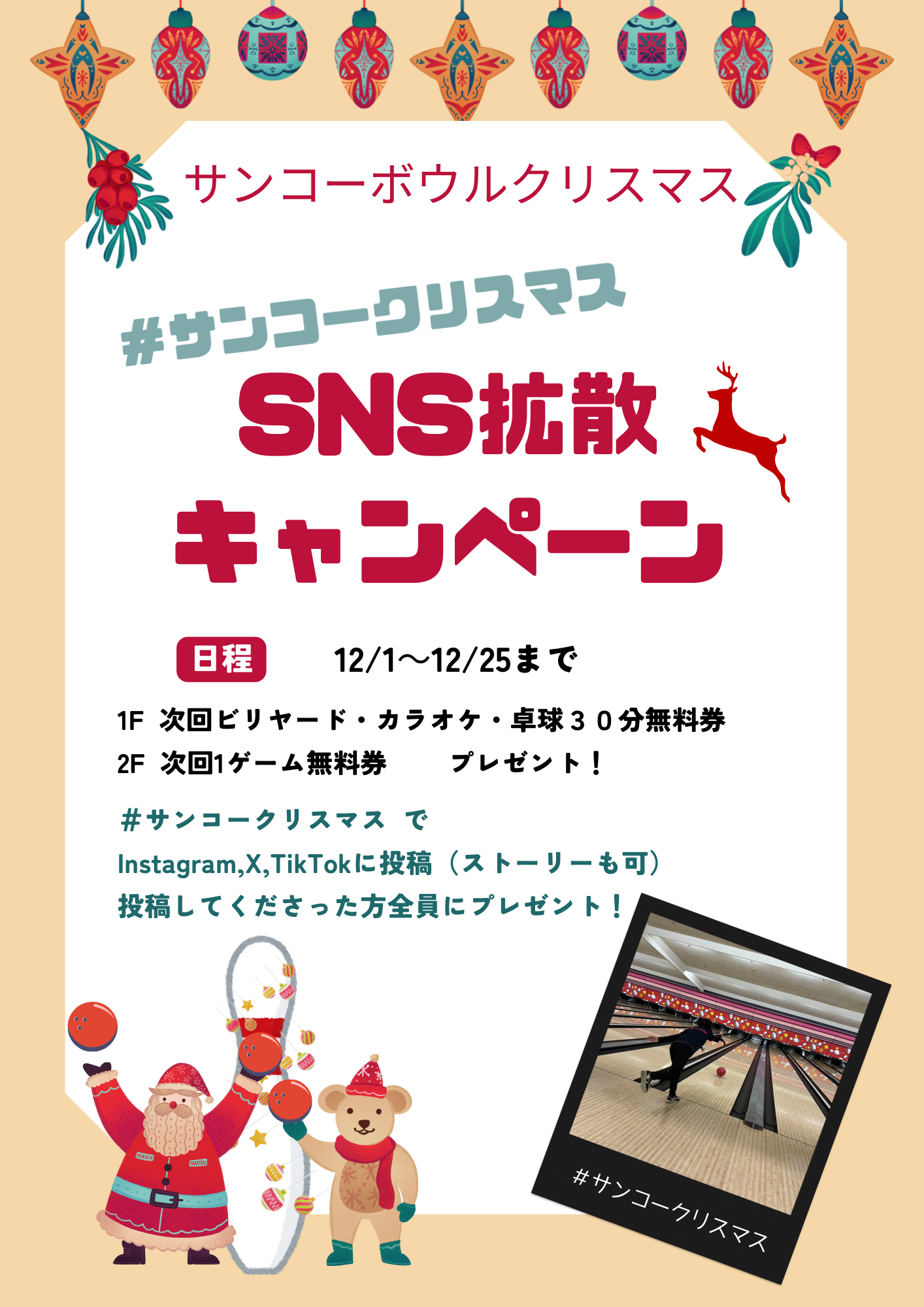 12月1日~12月25日期間中にサンコーボウルで撮影した写真をSNSへ投稿!!